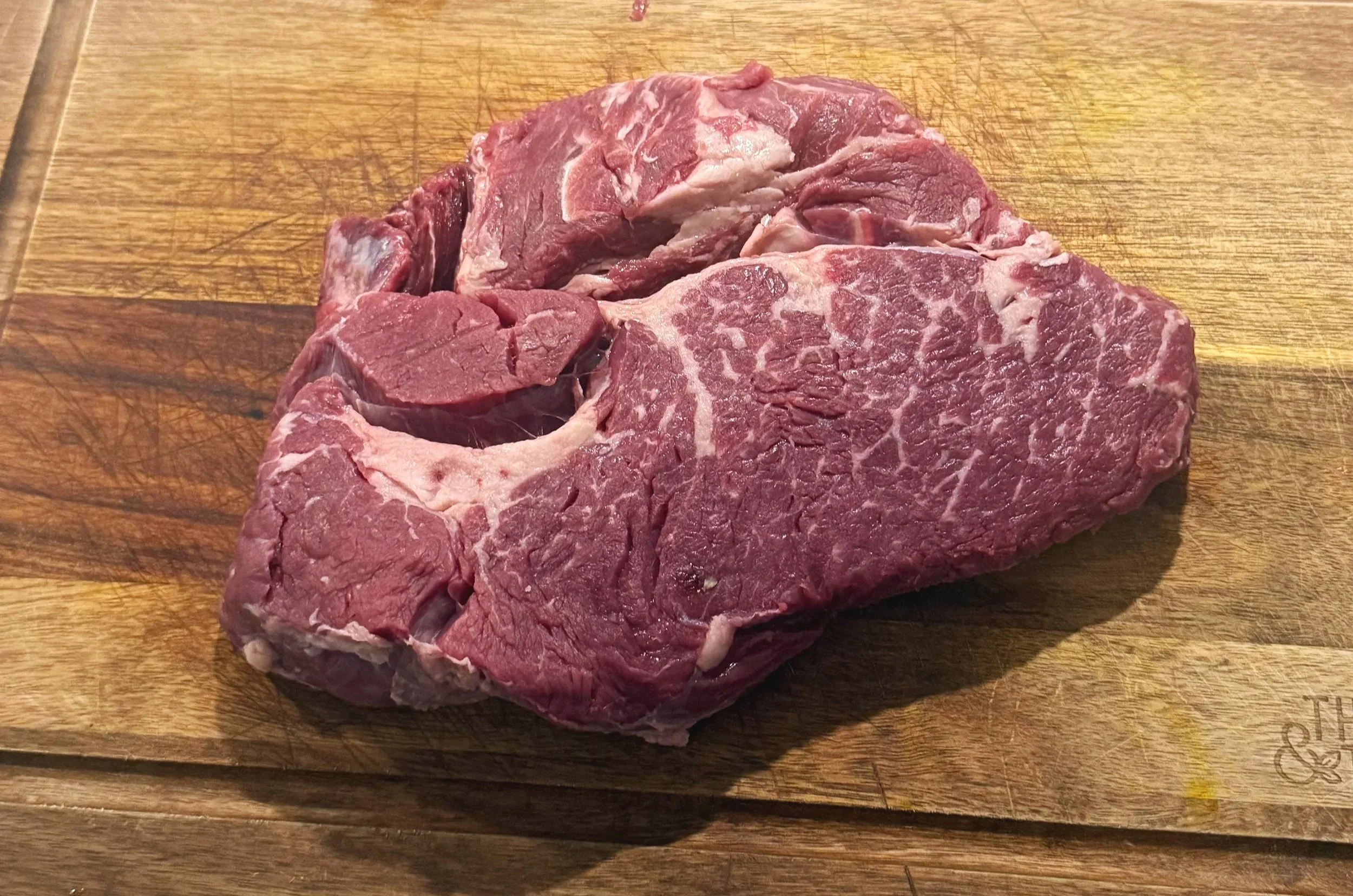 Heat oil in a pan and sear the chuck roast for 2–3 minutes per side.