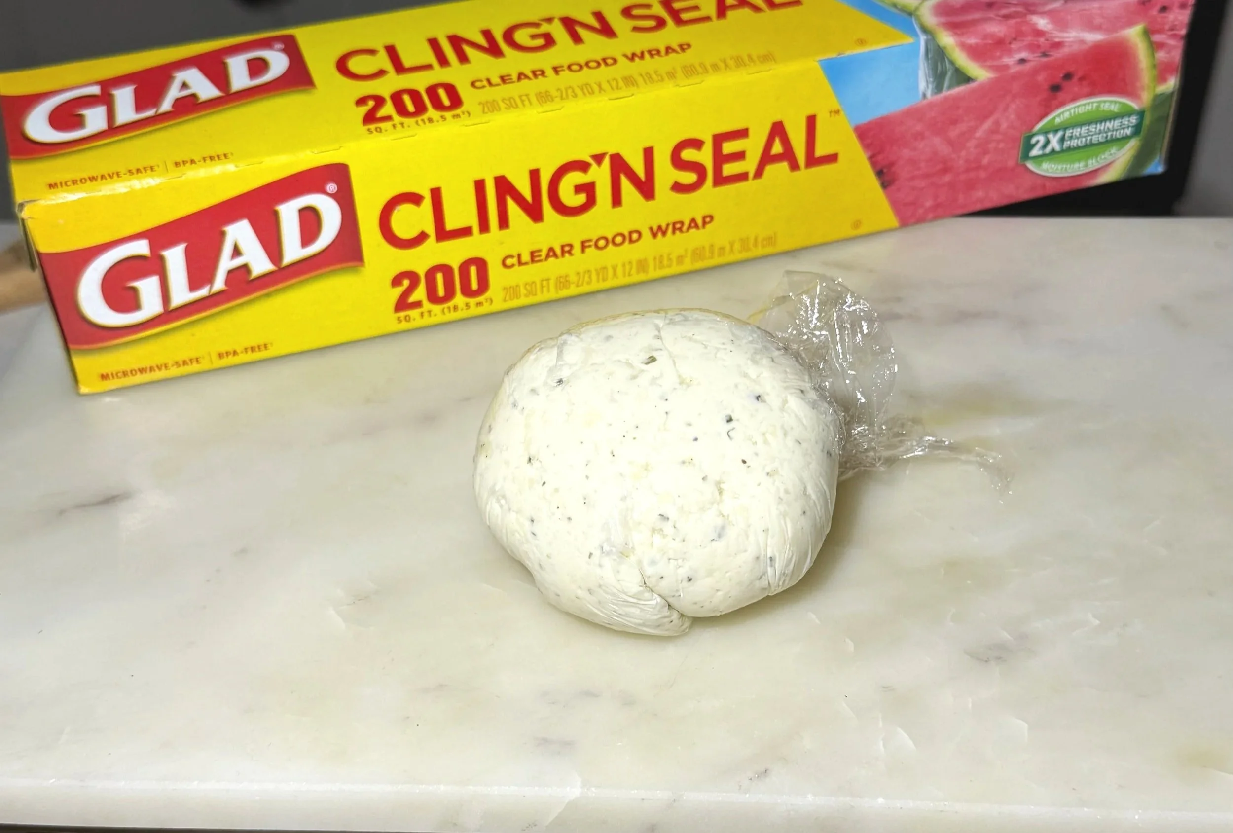 Scoop the mixture onto plastic wrap, shape into a ball, and refrigerate for 20–30 minutes until slightly firm but still spreadable.Prepare the coating