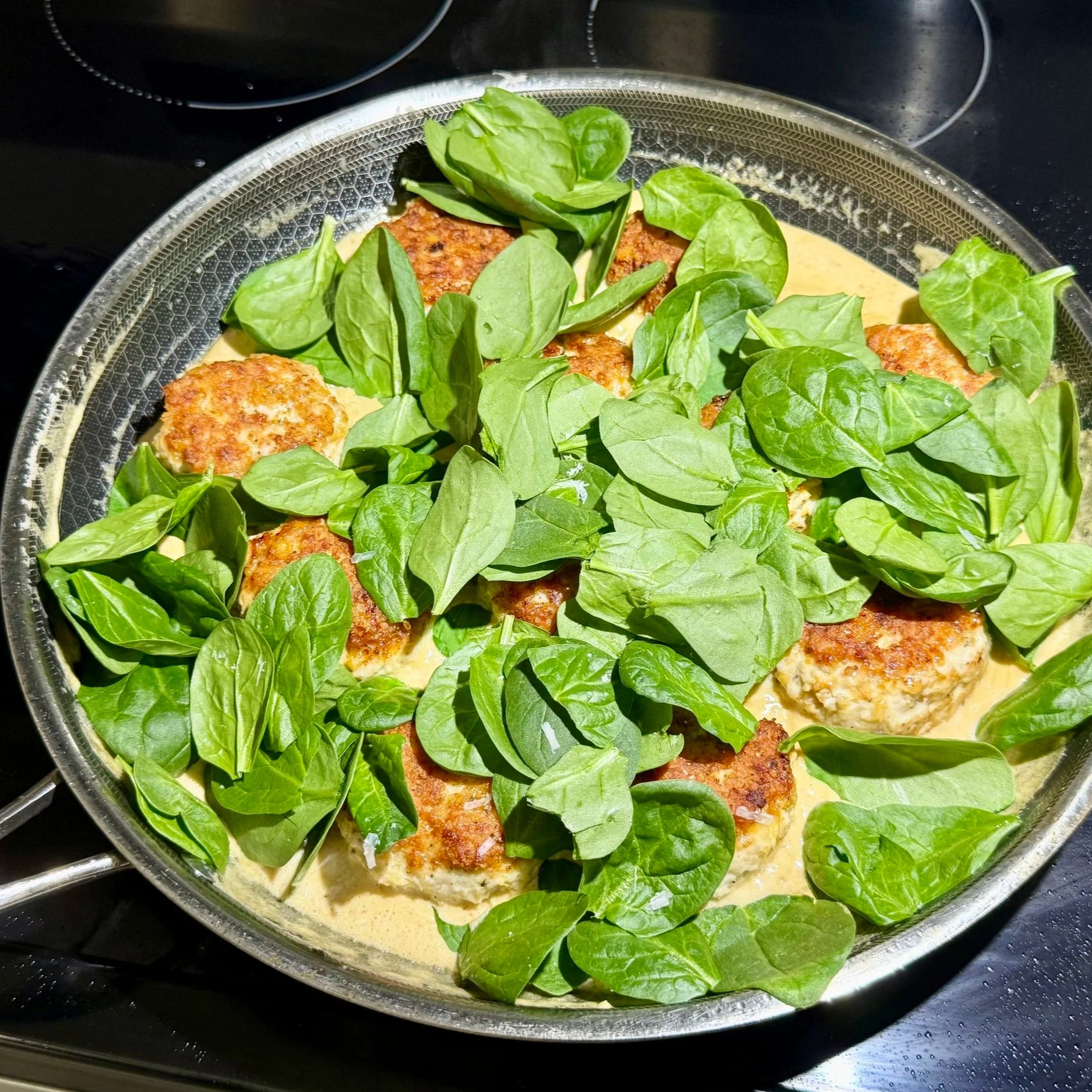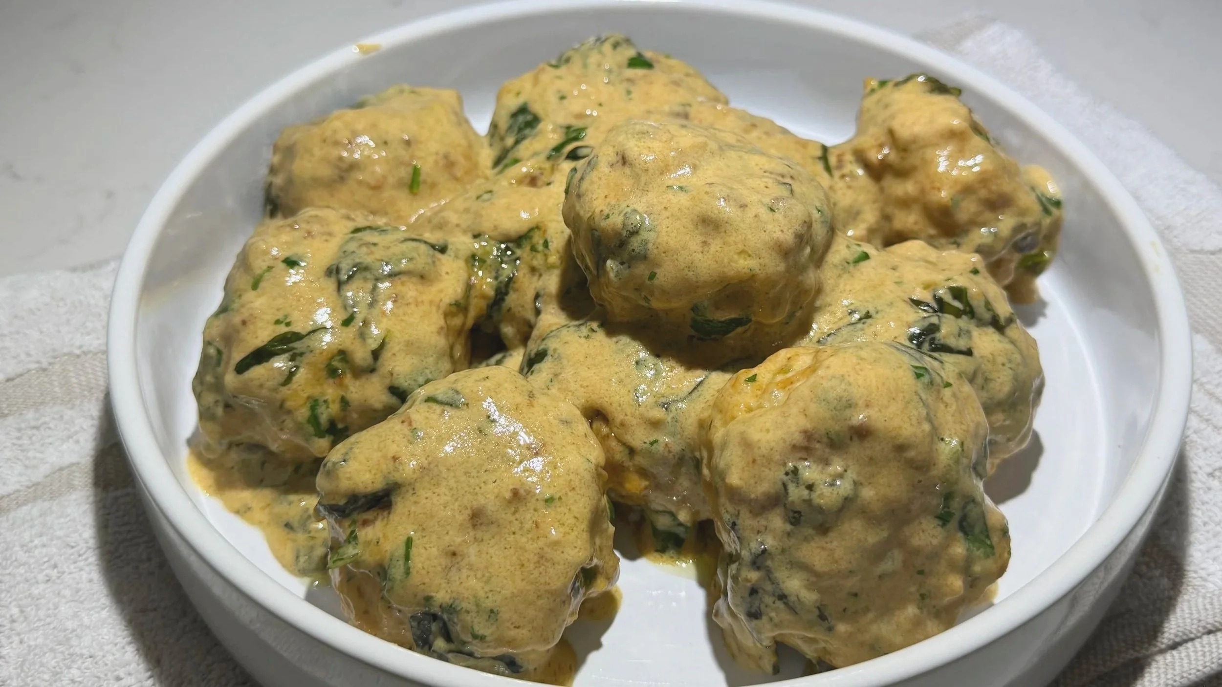 Garlic Alfredo Chicken Meatballs with Spinach