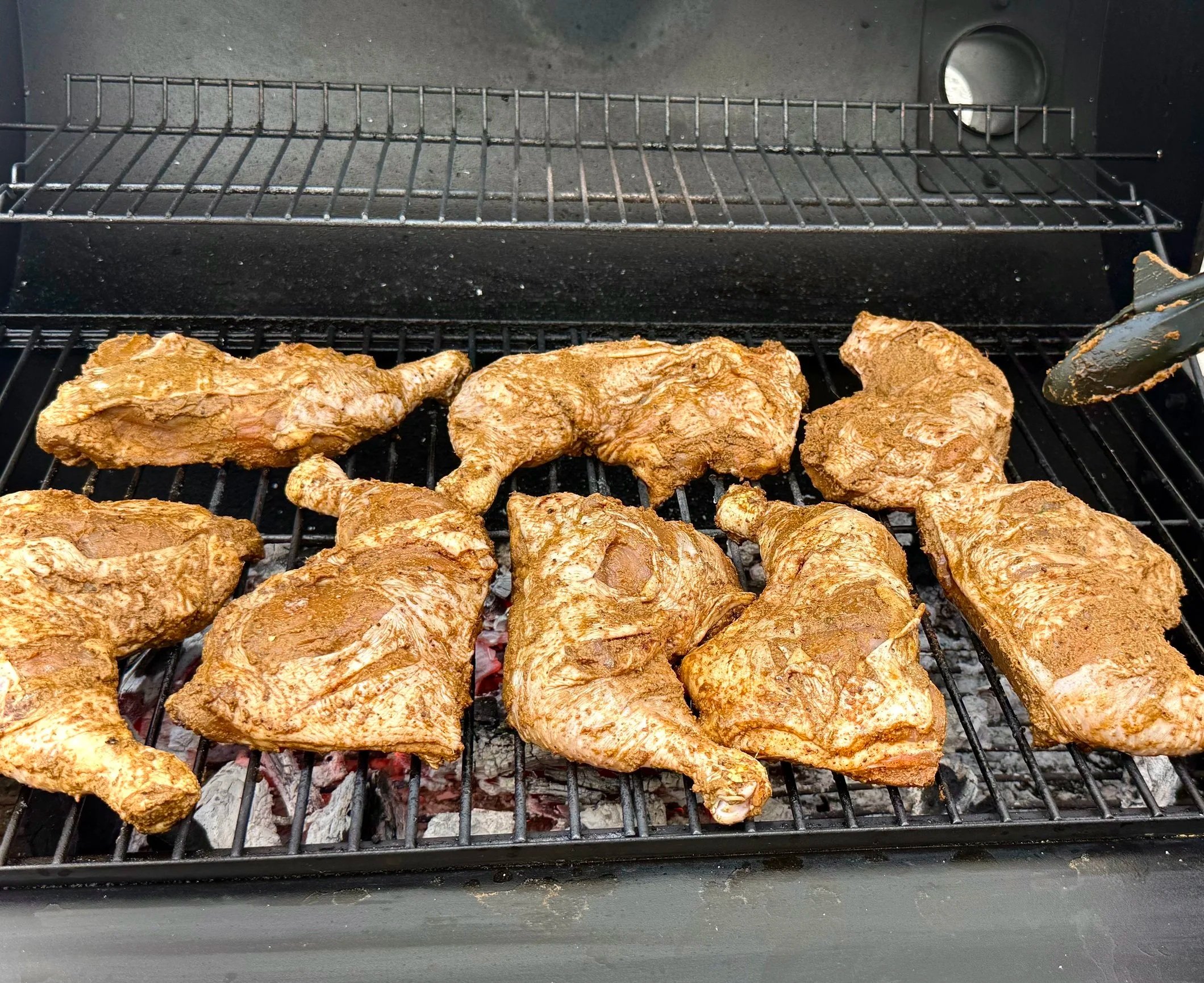 Leg quarters or bone-in thighs (more flavor, more juice)