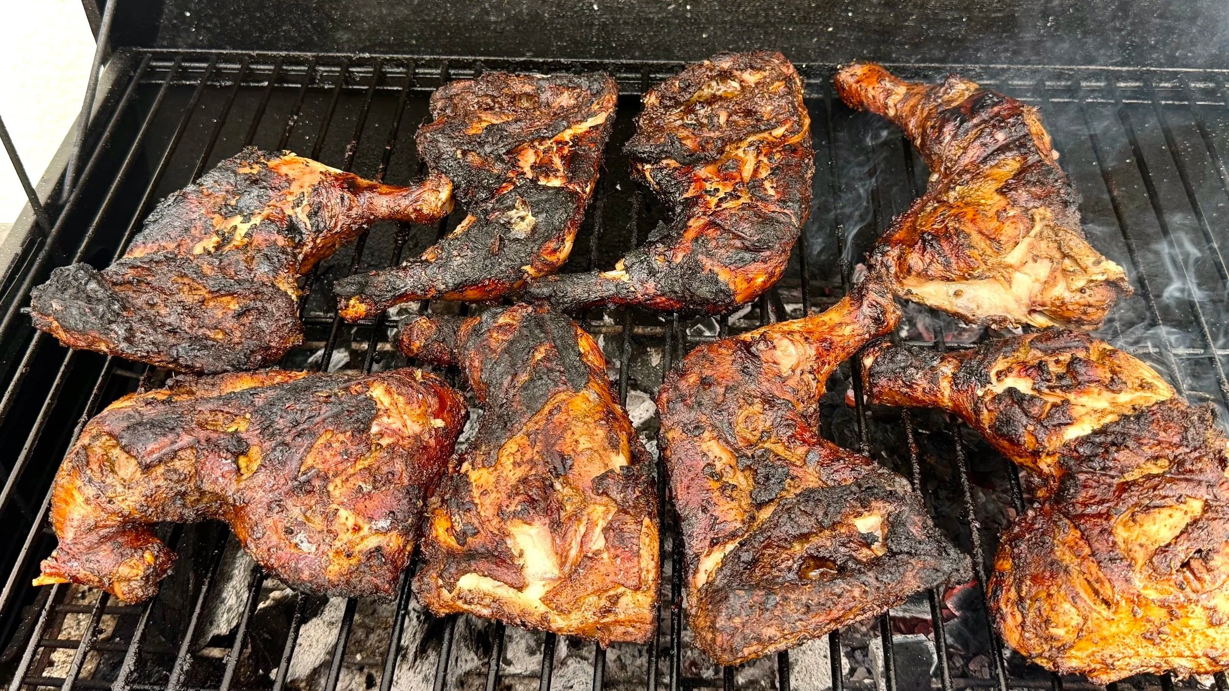 Jamaican jerk chicken on the grill